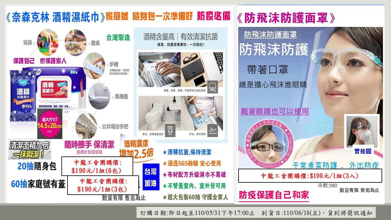 【好康團購】05.31止、06.18到貨-酒精濕紙巾、面罩